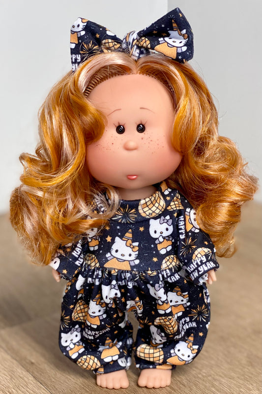Mia New Years Kitty Long Sleeve Bubble Romper and Tie On Headband