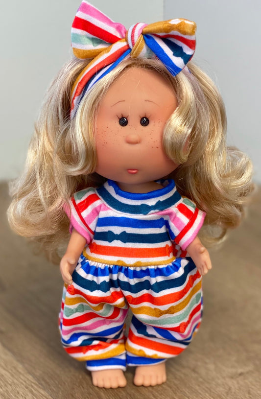 Mia Striped Bows Tank Sleeve Bubble Romper and Tie On Headband