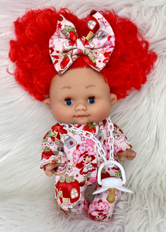 10” Strawberry Girl Sleeper and 3” Bow Clip