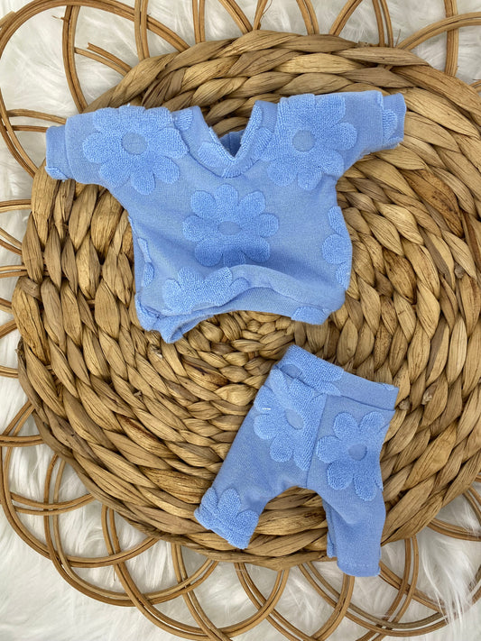 Mia Blue Terry Retro Flower T-Shirt Dress Leggings and Tie On Headband