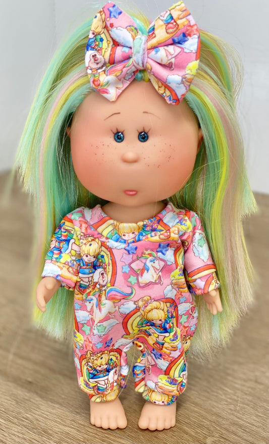 Mia Rainbow Girl Romper and 2β Bow Clip