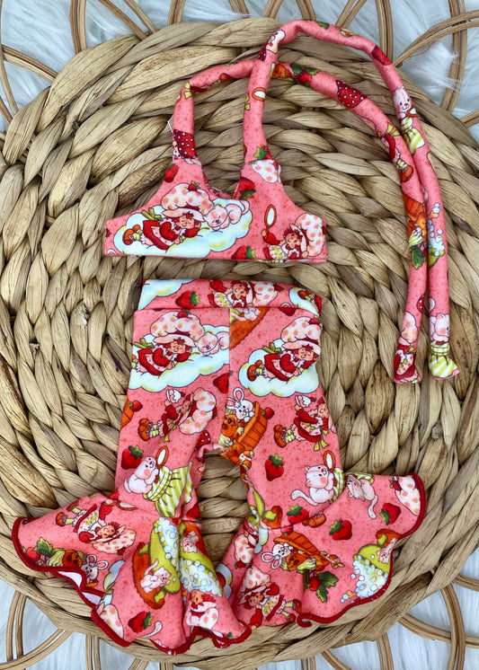 Mia Vintage Strawberry Girl Halter Top/Bell Bottom Pants and Tie on Headband