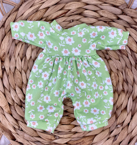 Mia Green and White Floral Long Sleeve Bubble Romper and Tie On Headband