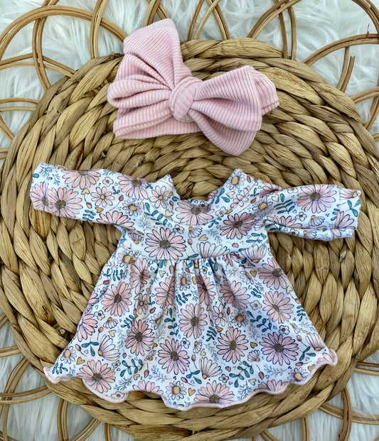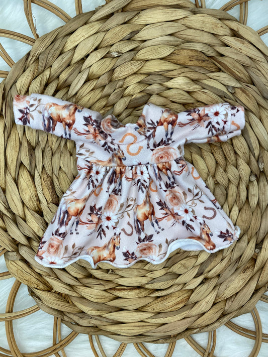 Mia Floral Horses Long Sleeve Dress and Tie On Headband