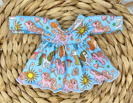 Mia Retro Ponies Long Sleeve Dress and Tie On Headband