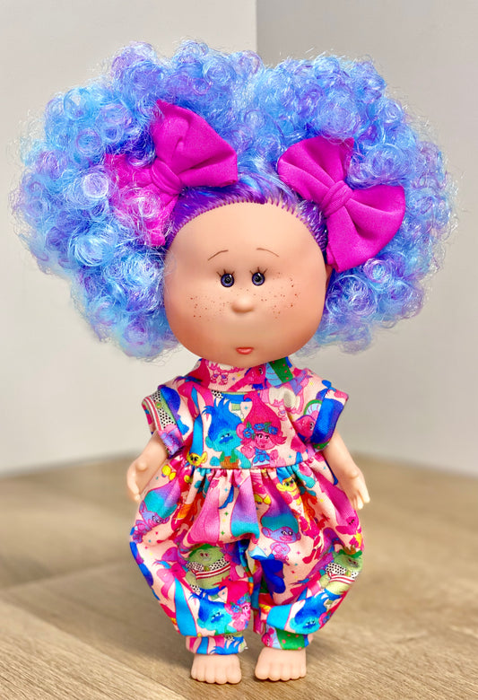 Mia Troll Friends Tank Sleeve Bubble Romper And 2” Piggy Bow Clips