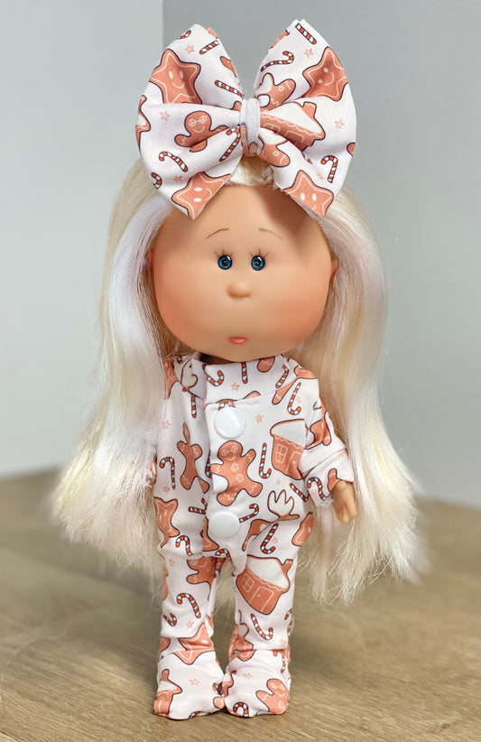 Mia Gingerbread Footed Pajamas and 3” Bow Clip