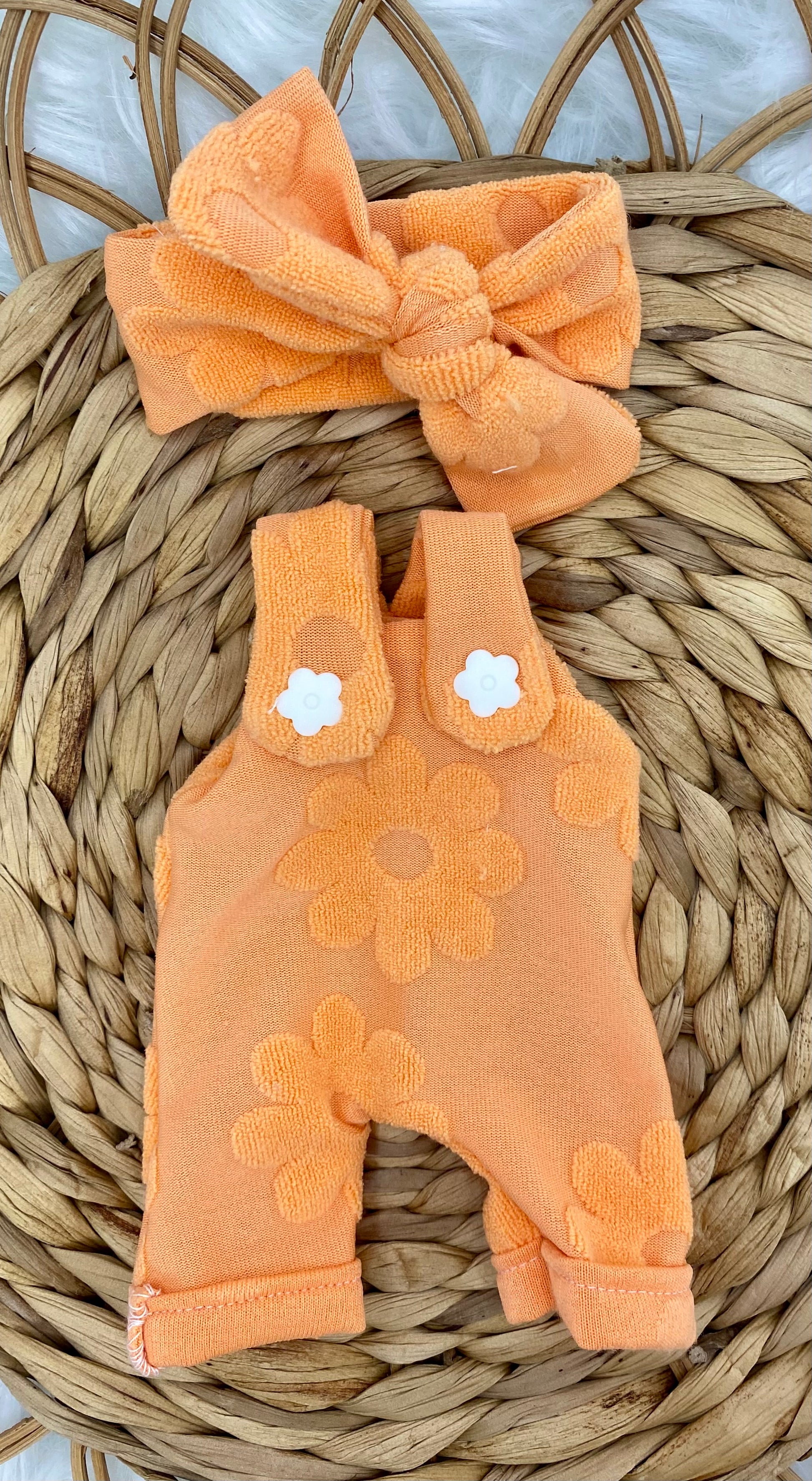 Mia Orange Terry Overalls and Tie On Headband